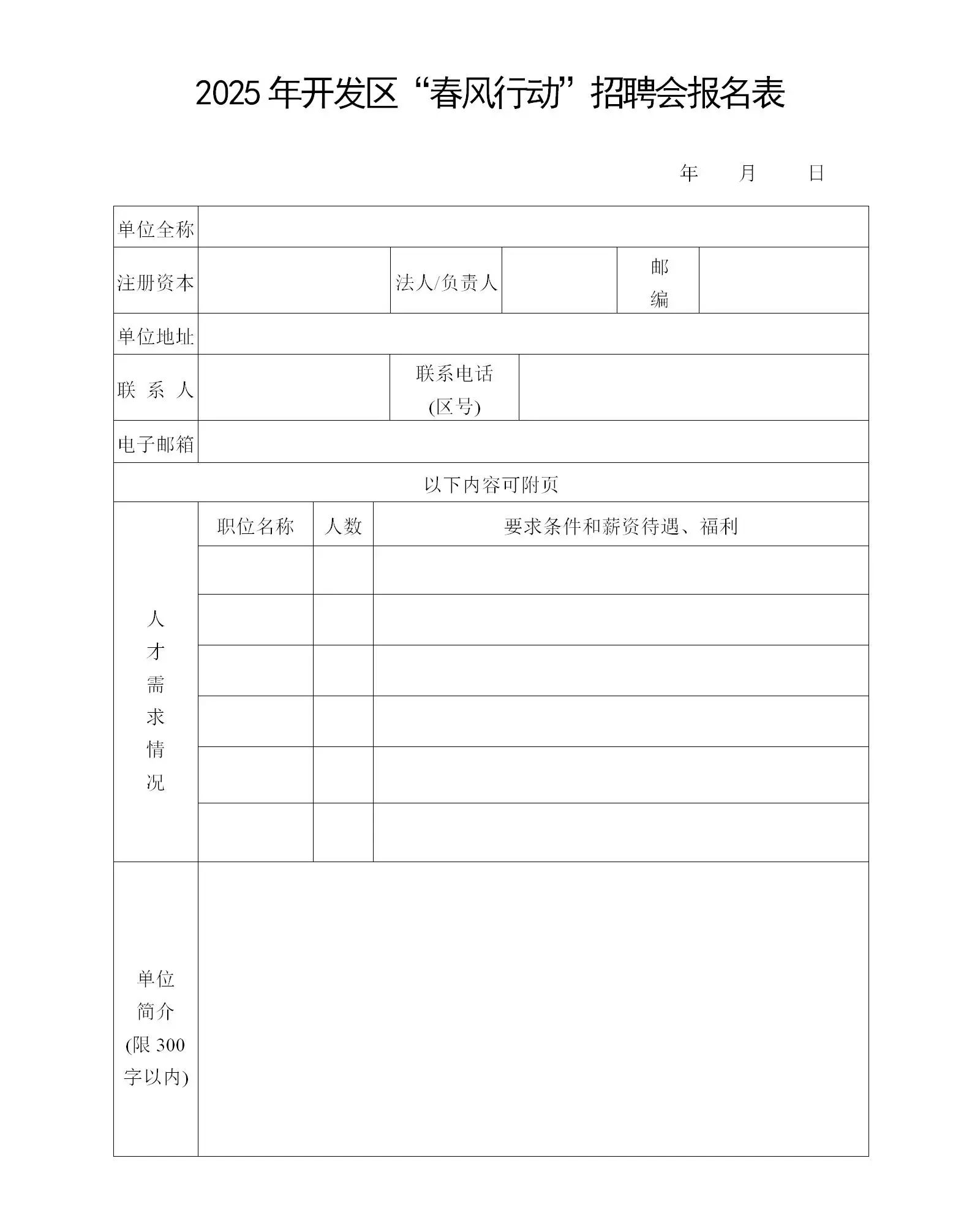 附件:2025年開發(fā)區(qū)“春風(fēng)行動”招聘會報名表